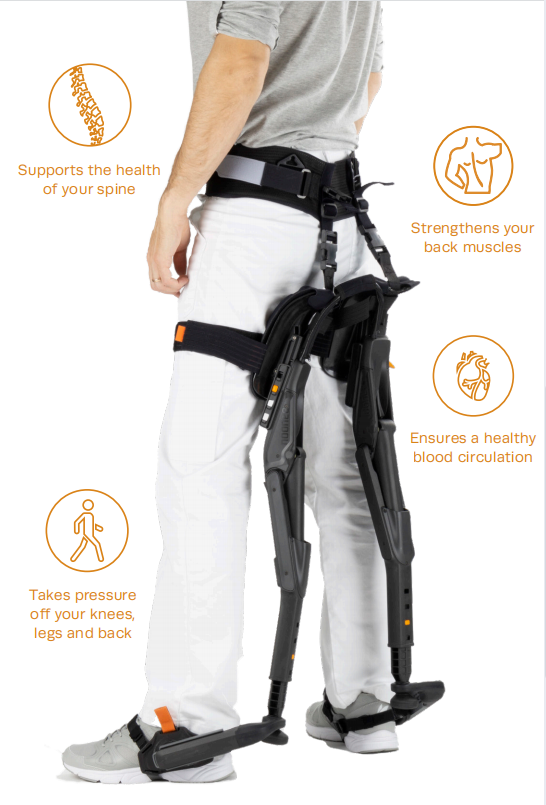 經常在坐、站和走之間變換。 使用德國 Noonee 機械外骨骼,這種變化可以在幾秒鐘內完成。