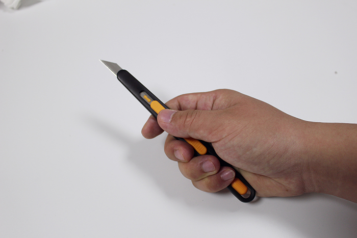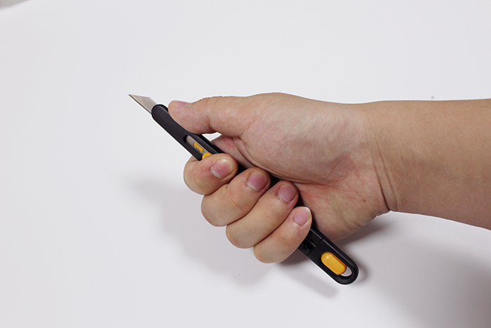3. 用掌心緊握安全刀具,代替拇指把刀片維持在暴露于刀柄外的狀態。