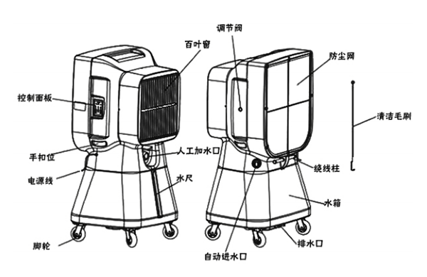 涼風機采用高科技的水簾產品,依據水的蒸發吸熱原理,通過吸收外面環境中的空氣,降溫之后送達高溫區域,從而使得環境舒適。此種設備在降溫的同時還具有增濕、通風換氣、增氧除塵、空氣凈化、去異味等直接效果。