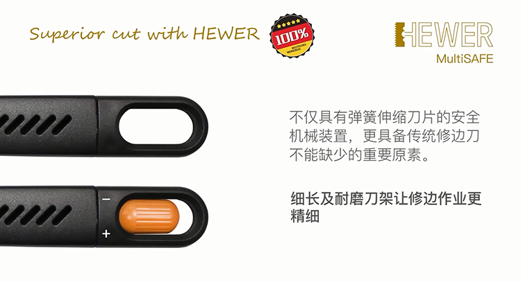 HEWER家的產品,無論是剪刀,修邊刀還是美工刀,都秉承著將危險降低的理念,把安全感提升,讓受傷的概率降低。